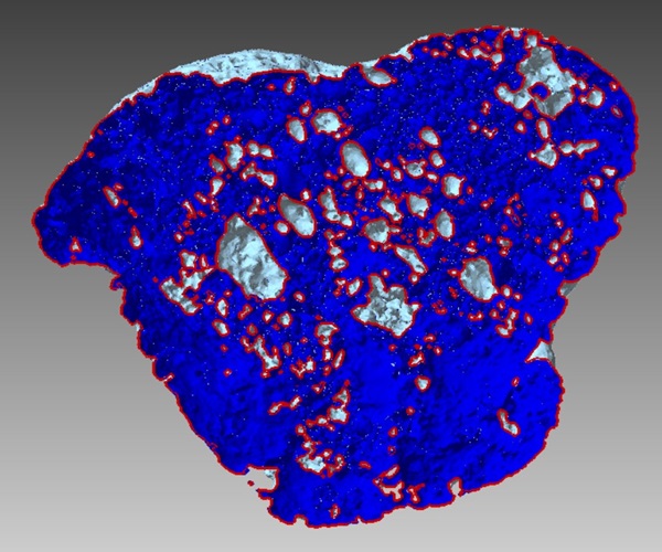 CTで撮ったデータをポリゴンメッシュ化し、内部の空洞(ボイド)の断面を確認。